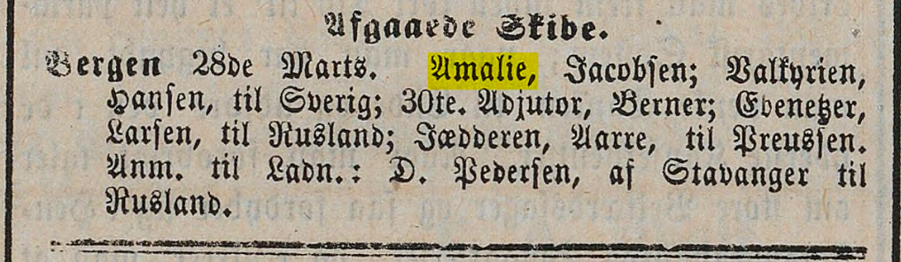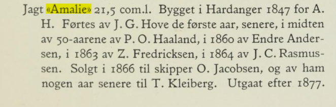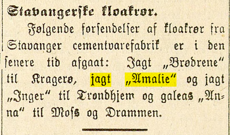 Stavanger Aftenblad, torsdag 13. juli 1911 omtaler jagt Amalie, usikkert men mulig er det denne, selv om den da vil være veldig gammel. Etter dette finner jeg den ikke omtalt.