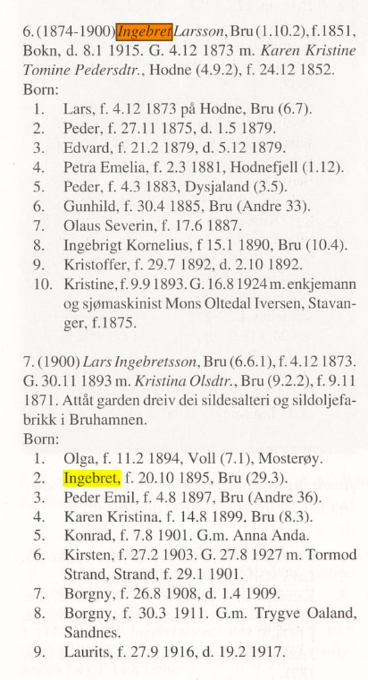 Finner avsiklipp med omtale av sildoljefabrikk som skal anlegges på Bru. Dette stemmer ikke helt med Lars sitt.