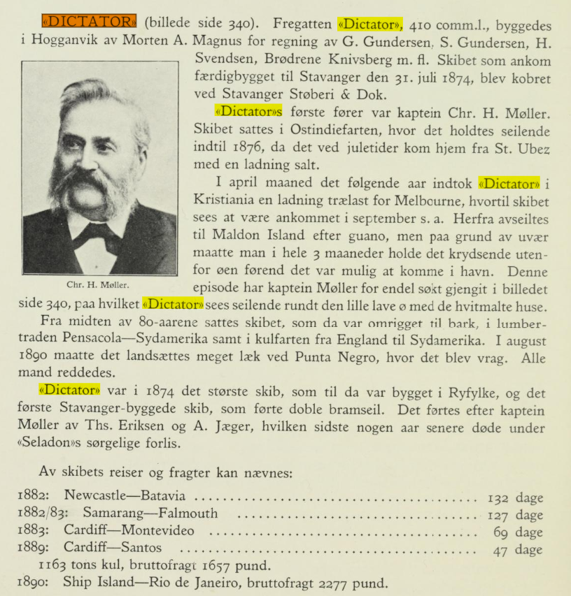 11/5-1887 Dictator i Stavanger til Newport - av 12/6-1888 i B.(uenos) Aires