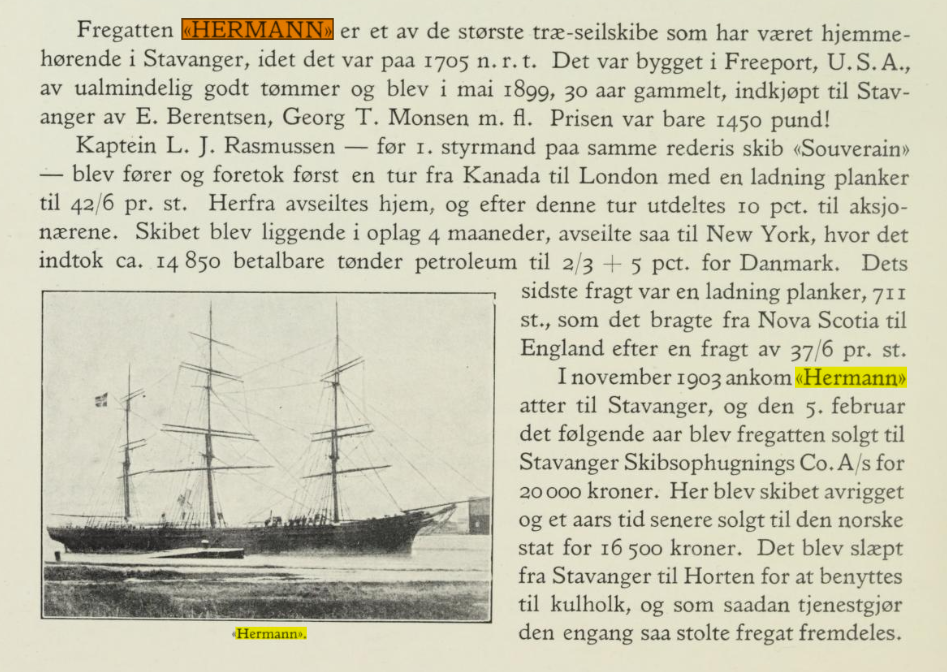 Magnulus var påmønstret: 4/2-1901 Hermann i Stavanger til Gothenborg - av 7/1-1902 i Bordeaux