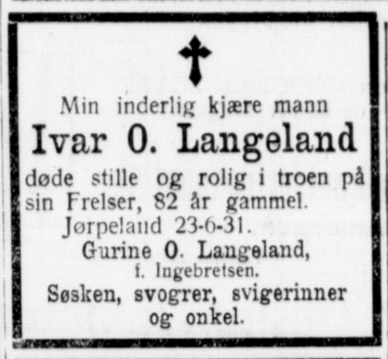 14/4-1894 Gurine i Stavanger for Nordfjord - avmønstret står tom