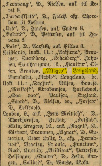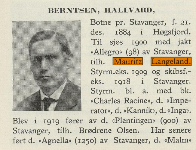 Tilbake til Maurits Mauritsen Langeland - til Skipsliste - Langeland - til komplett skipsliste