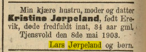 Lars første kone - Stavanger Aftenblad, lørdag 9. mai 1903