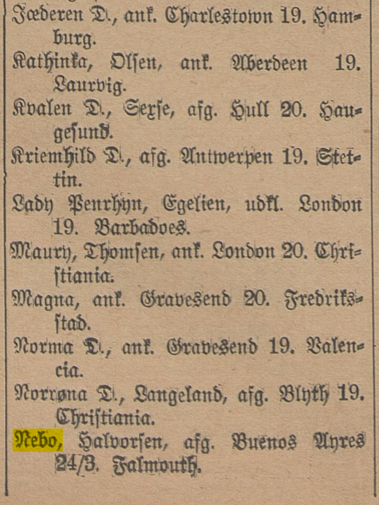 9/3-1904 Nebo i Buenos Aires til Europa - av 13/6-1904 i Greenock
