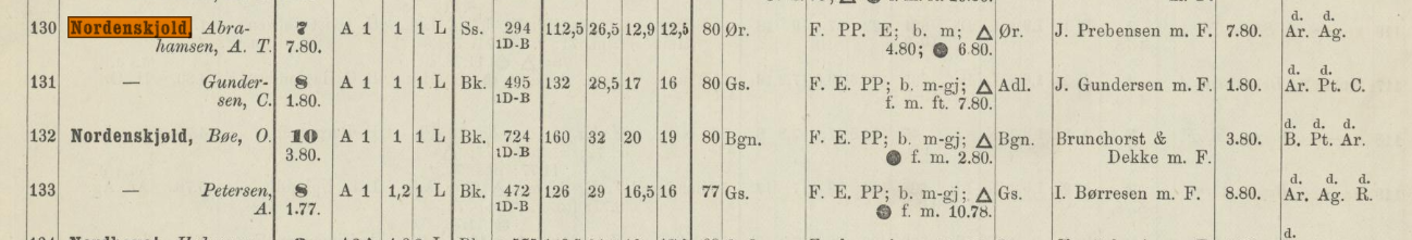 Register over norske skibe. 1895 fortsatt eiet av Prebensen & Abrahamsen.