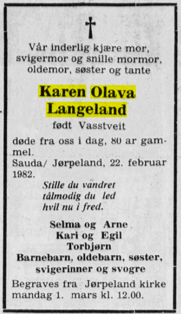 Sønnen Olav, Stavanger Avis, mandag 24. april 1944