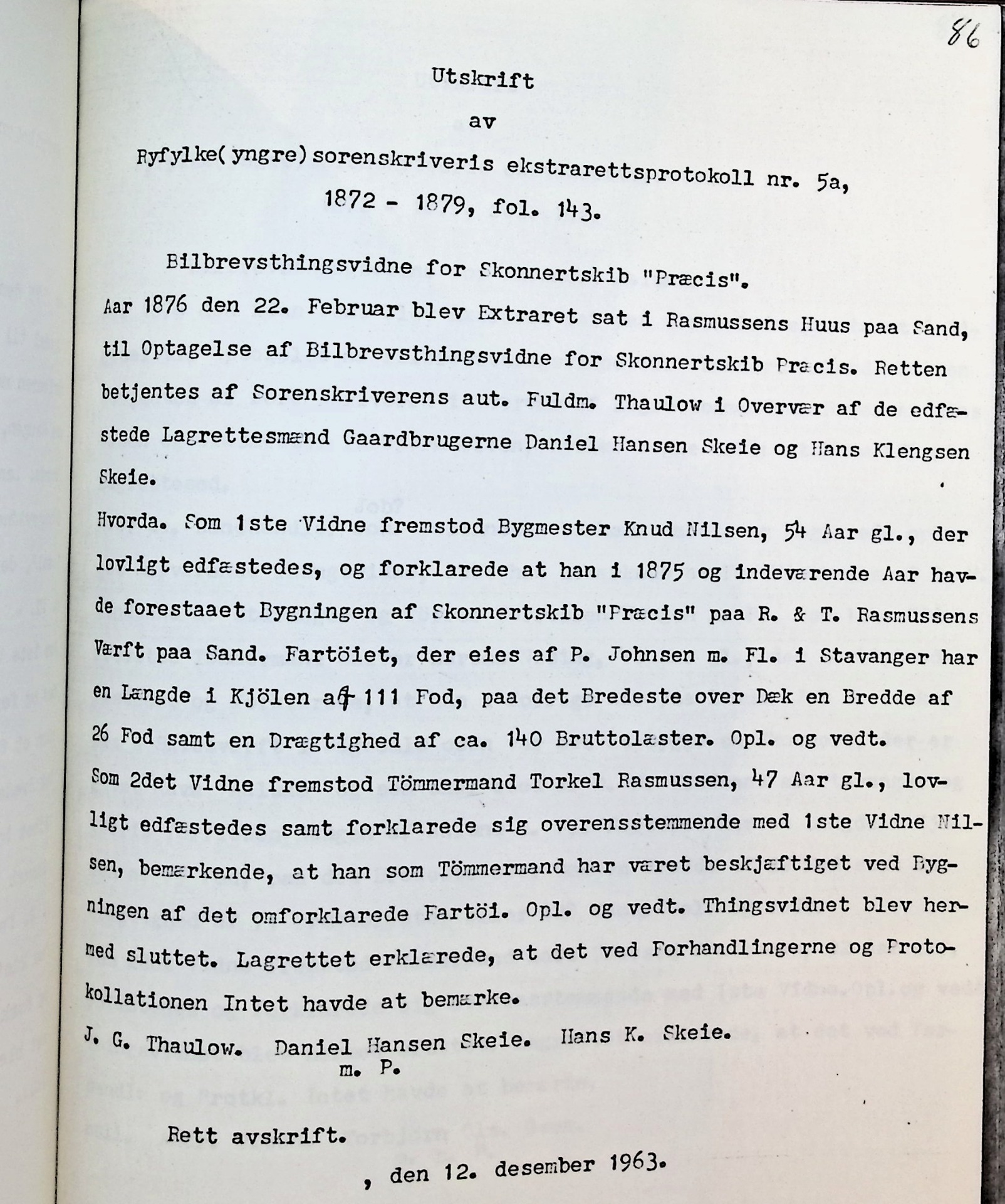 Dette stemmer med skonnertskibet i Stavanger sjøfarts historie : seilskibene og seilskibsfarten i aarene fra 1600 til 1922, bygget 1876 på Sand. Eier var P. Jophnsen og senere A. Meling. Skal være bygget av Knud Nielsen på R. & T. Rasmussen sitt verft.