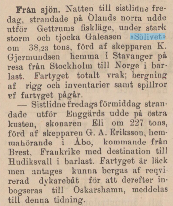 Andre med fartstid på Sølivet som trolig er denne, men ikke dobbeltsjekket: