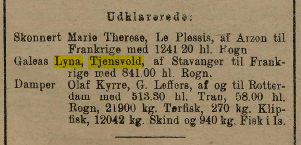 30/6-1896 Lyna i Bergen til Frankrige - av 20/5-1896 i Stavanger (skipper)
